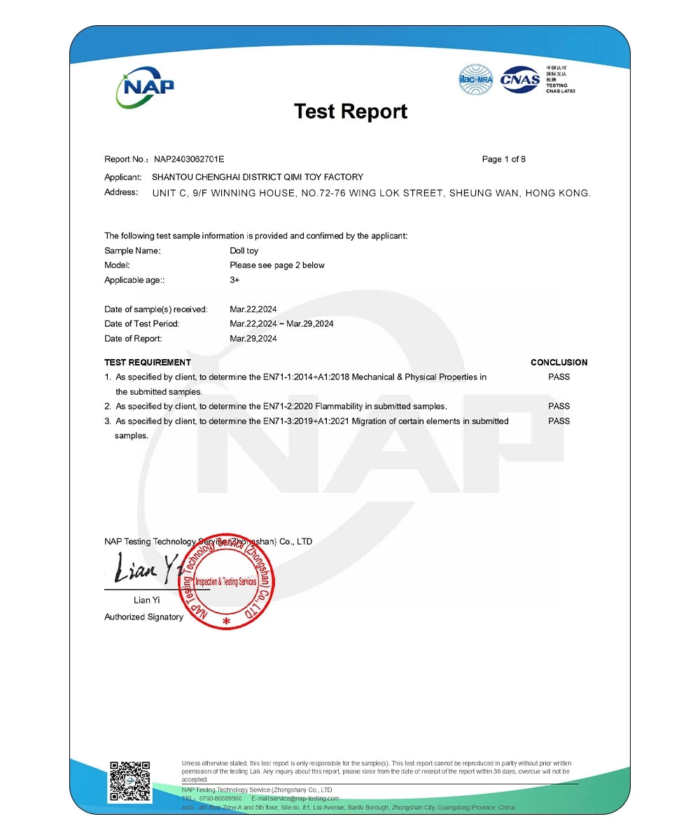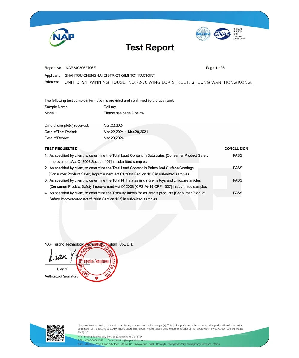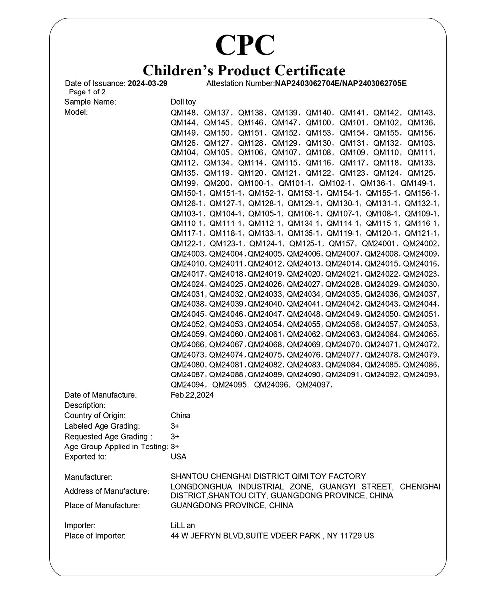 Protegiendo a su hijo, garantizando que cada muñeca cumpla con los más altos estándares de seguridad.