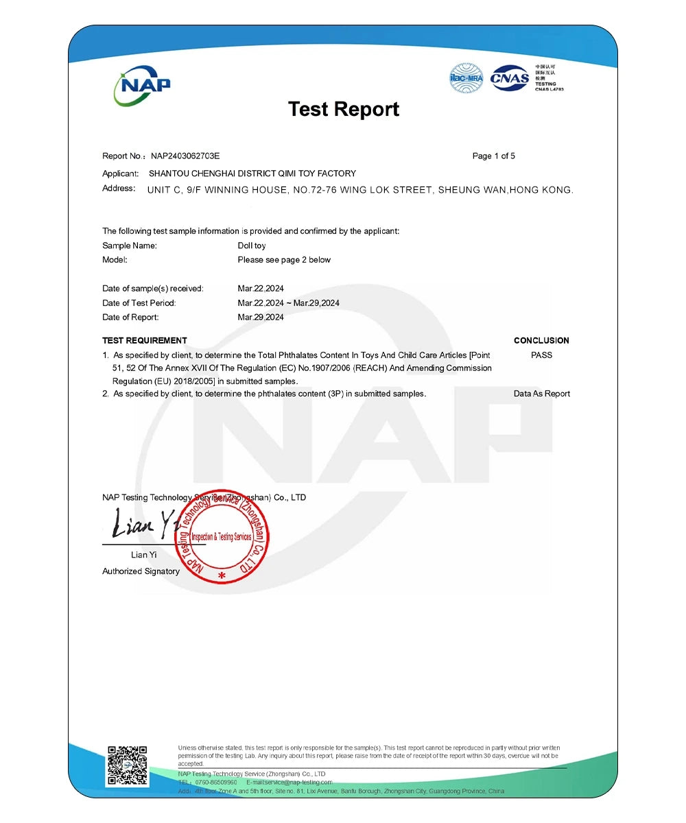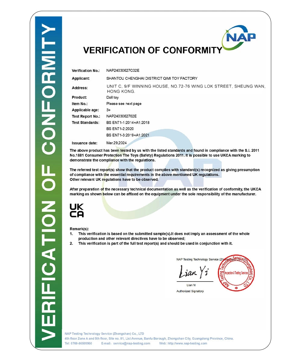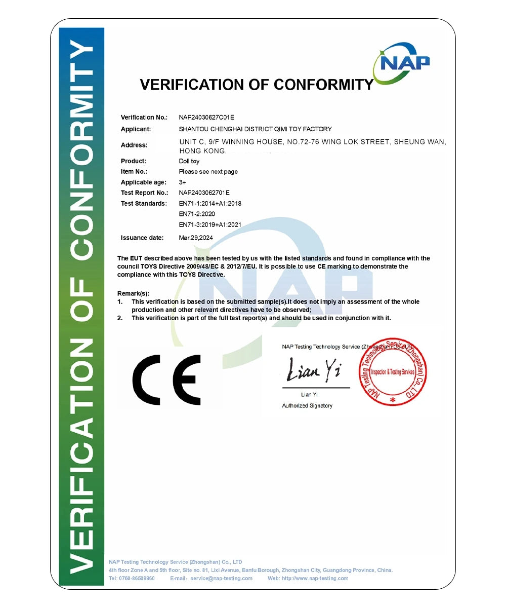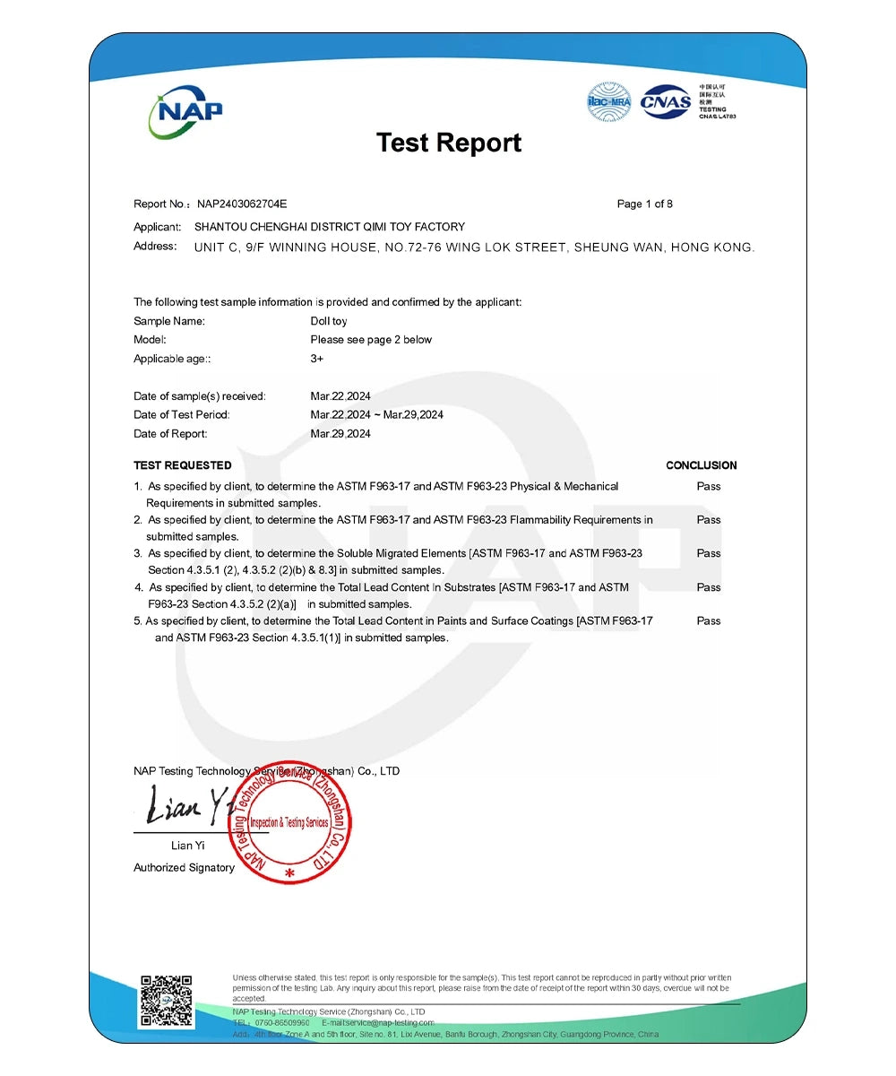 Protegiendo a su hijo, garantizando que cada muñeca cumpla con los más altos estándares de seguridad.